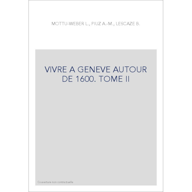 VIVRE A GENEVE AUTOUR DE 1600. TOME II