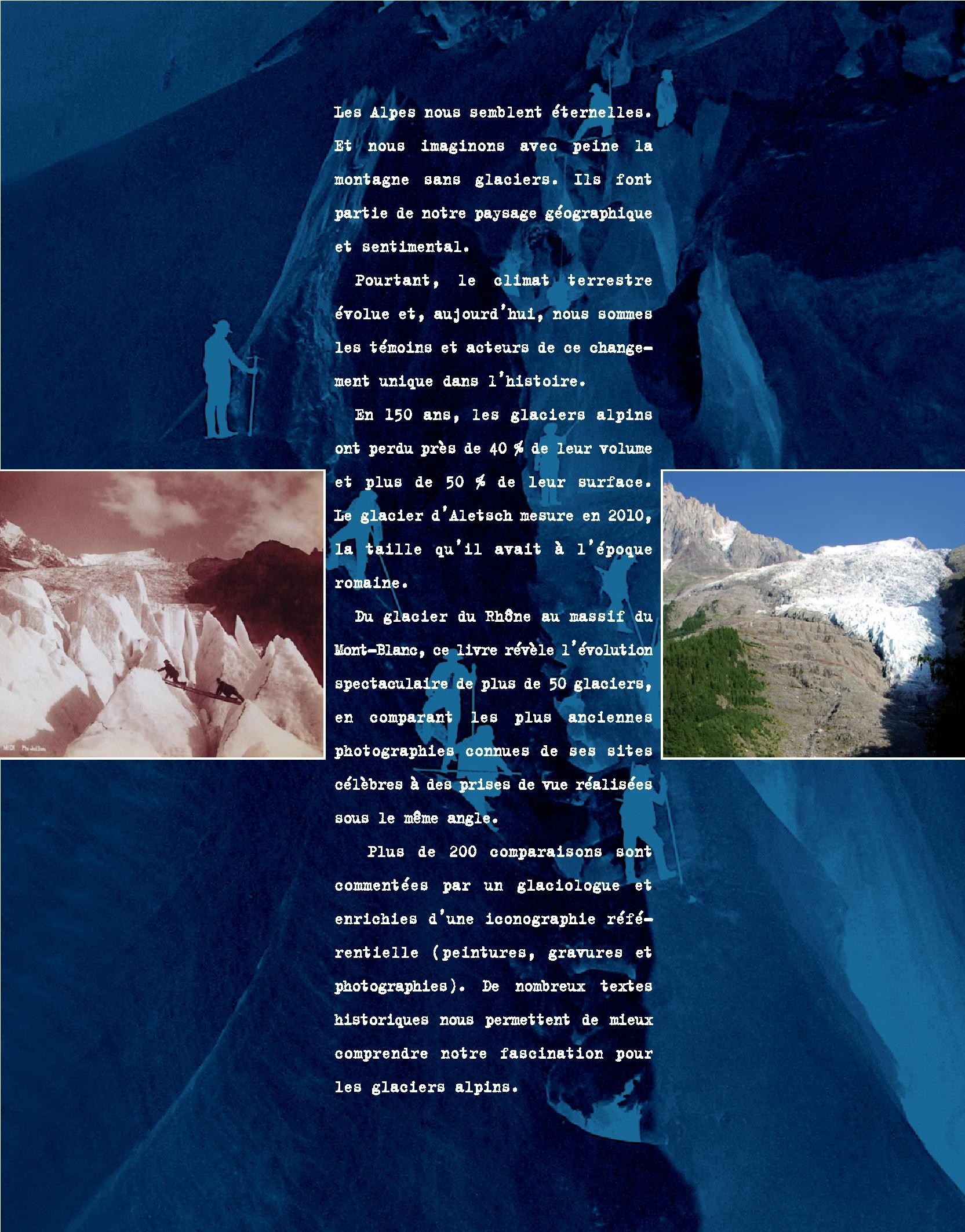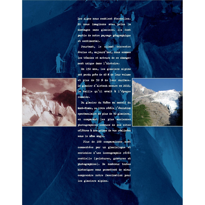 Les Alpes nous semblent éternelles, et nous imaginons difficilement la montagne sans glaciers. Ils constituent une part importante de notre paysage géographique et sentimental. Pourtant, le climat terrestre évolue et nous sommes, actuellement, les témoins et les acteurs de ce changement unique dans l`histoire. En 150 ans, de nombreux glaciers alpins ont perdu plus de 40 % de leur volume et parfois 50 % de leur surface. Aujourd`hui, le glacier d`Aletsch mesure la taille qu`il avait à l`époque romaine. Du glacier du Rhône au massif du Mont-Blanc, ce livre révèle l`évolution spectaculaire des principaux glaciers, en comparant les plus anciennes photographies connues de ses sites célèbres à des prises de vue réalisées sous le même angle. 130 comparaisons sont commentées par un glaciologue et enrichies d`une iconographie référentielle (plus de 200 photographies, peintures et gravures). De nombreux textes historiques nous permettent de mieux comprendre notre fascination pour les glaciers alpins.