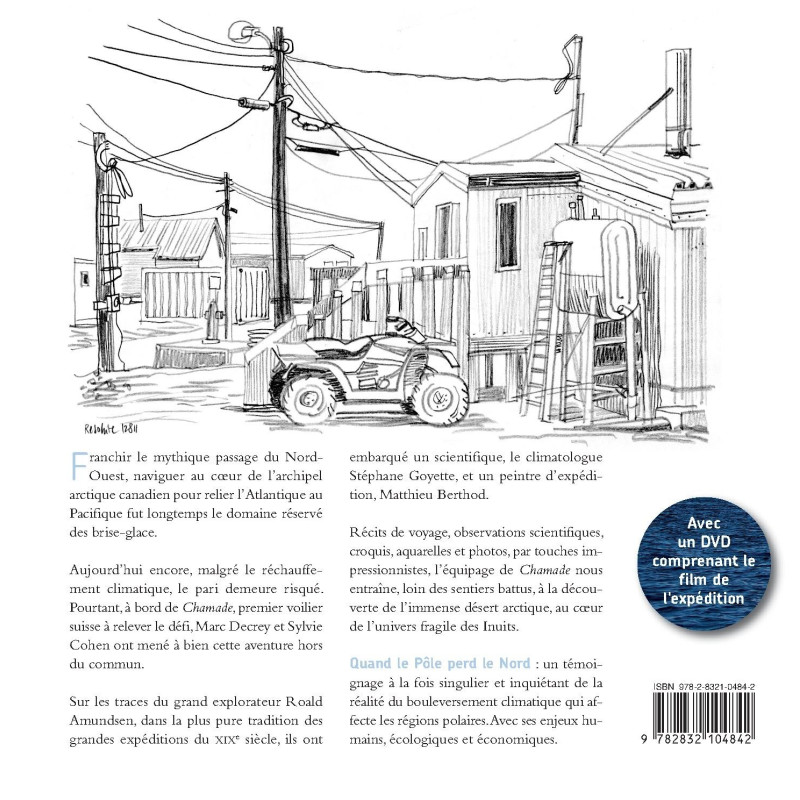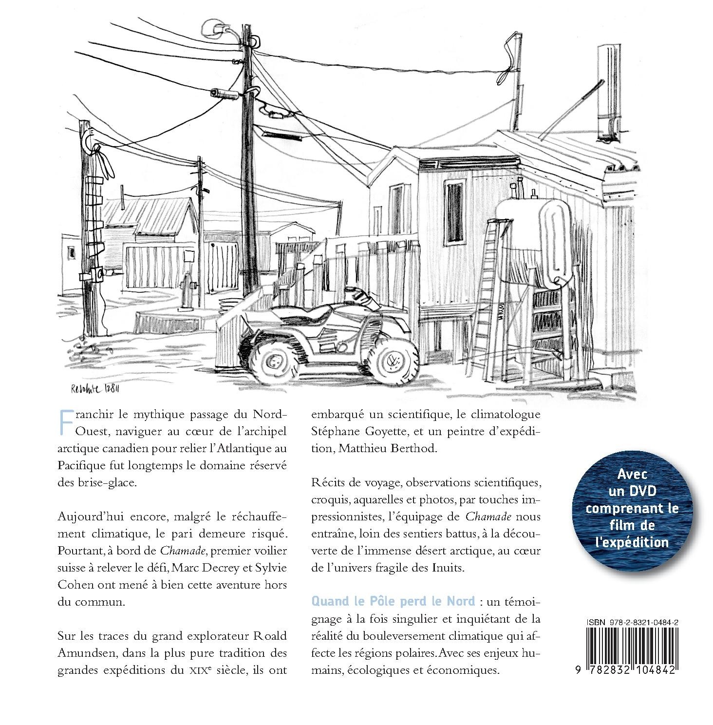 Franchir le mythique passage du Nord-Ouest, naviguer au cœur de l’archipel arctique canadien pour relier l’Atlantique au Pacifique fut longtemps le domaine réservé des brise-glace. Aujourd’hui encore, malgré le réchauffement climatique, le pari demeure risqué. Pourtant, à bord de Chamade, premier voilier suisse à relever le défi, Marc Decrey et Sylvie Cohen ont mené à bien cette aventure hors du commun. Sur les traces du grand explorateur Roald Amundsen, dans la plus pure tradition des grandes expéditions du XIXe siècle, ils ont embarqué un scientifique, le climatologue Stéphane Goyette, et un peintre d’expédition, Matthieu Berthod. Récits de voyage, observations scientifiques, croquis, aquarelles et photos, par touches impressionnistes, l’équipage de Chamade nous entraîne, loin des sentiers battus, à la découverte de l’immense désert arctique, au cœur de l’univers fragile des Inuit. Quand le Pôle perd le Nord : un témoignage à la fois singulier et inquiétant de la réalité du bouleversement climatique qui affecte les régions polaires. Avec ses enjeux économiques, écologiques et humains.