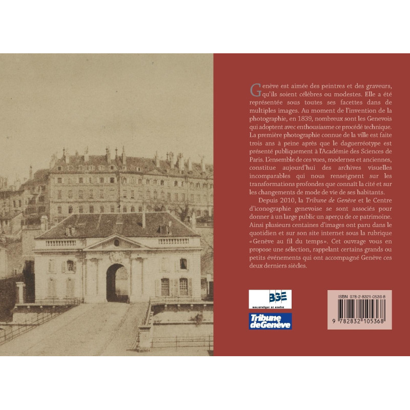 Genève est aimée des peintres et des graveurs, qu’ils soient célèbres ou modestes. Elle a été représentée sous toutes ses facettes dans de multiples images. Au moment de l’invention de la photographie, en 1839, nombreux sont les Genevois qui adoptent avec enthousiasme ce procédé technique. La première photographie connue de la ville est faite trois ans à peine après que le daguerréotype est présenté publiquement à l’Académie des Sciences de Paris. L’ensemble de ces vues, modernes et anciennes, constitue aujourd’hui des archives visuelles incomparables qui nous renseignent sur les transformations profondes que connaît la cité et sur les changements de mode de vie de ses habitants. Depuis 2010, la Tribune de Genève et le Centre d’iconographie genevoise se sont associés pour donner à un large public un aperçu de ce patrimoine. Ainsi plusieurs centaines d’images ont paru dans le quotidien et sur son site internet sous la rubrique «Genève au fil du temps». Cet ouvrage vous en propose une sélection, rappelant certains grands ou petits événements qui ont accompagné Genève ces deux derniers siècles.