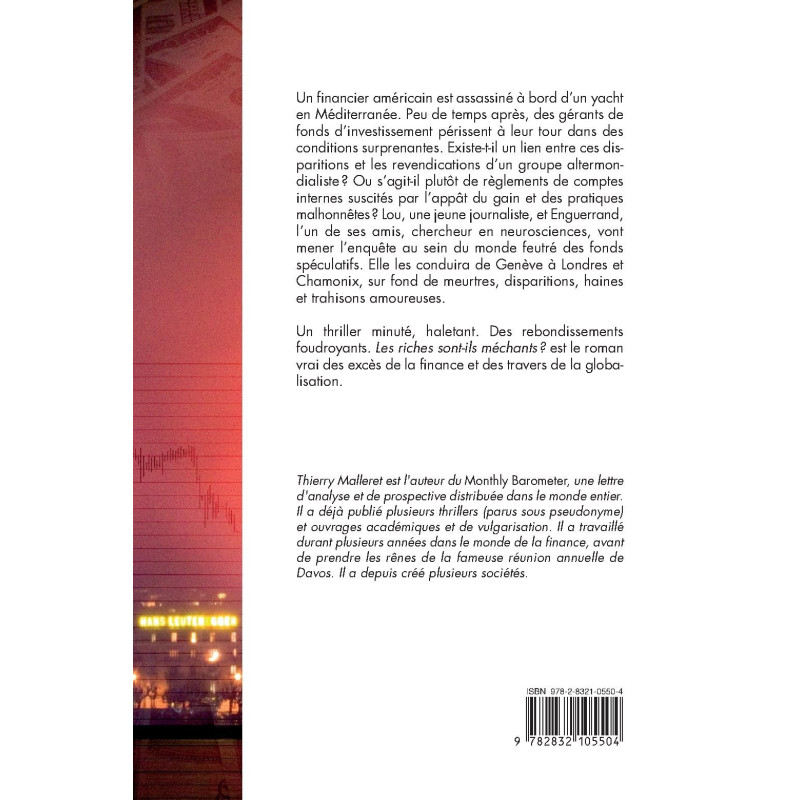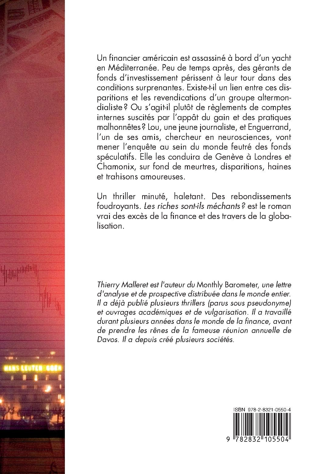 Un thriller minuté, haletant. Des rebondissements foudroyants. Les riches sont-ils méchants? est le roman vrai des excès de la finance et des travers de la globalisation.