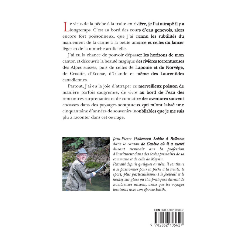 Le virus de la pêche à la truite en rivière, je l’ai attrapé il y a longtemps. C’est au bord des cours d’eau genevois, alors encore fort poissonneux, que j’ai connu les subtilités du maniement de la canne à la petite amorce et celles du lancer léger et de la mouche artificielle. J’ai eu la chance de pouvoir dépasser les horizons de mon canton et découvrir la beauté magique des rivières torrentueuses des Alpes suisses, puis de celles de Laponie et de Norvège, de Croatie, d’Ecosse, d’Irlande et même des Laurentides canadiennes. Partout, j’ai eu la joie d’attraper ce merveilleux poisson de manière parfois saugrenue, de vivre au bord de l’eau des rencontres surprenantes et de connaître des aventures souvent cocasses dans des paysages somptueux qui m’ont laissé une cinquantaine d’années de souvenirs inoubliables que je me suis plu à raconter dans cet ouvrage.
