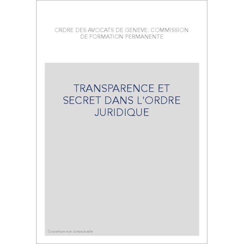 TRANSPARENCE ET SECRET DANS L'ORDRE JURIDIQUE