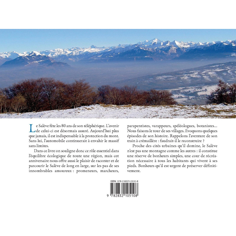 Le Salève fête les 80 ans de son téléphérique. L’avenir de celui-ci est désormais assuré. Aujourd’hui plus que jamais, il est indispensable à la protection du mont. Sans lui, l’automobile continuerait à envahir le massif sans limites. Dans ce livre on souligne donc ce rôle essentiel dans l’équilibre écologique de toute une région, mais cet anniversaire nous offre aussi le plaisir de raconter et de parcourir le Salève de long en large. Sur les pas de ses innombrables amoureux : promeneurs, marcheurs, parapentistes, varappeurs, spéléologues, botanistes… Nous faisons le tour de ses villages. Évoquons quelques épisodes de son Histoire. Rappelons l’aventure de son train à crémaillère : faudrait-il le reconstruire ? Proche des cités urbaines qu’il domine, le Salève n’est pas une montagne comme les autres : il constitue une réserve de bonheurs simples, une cour de récréation nécessaire pour tous les habitants qui vivent à ses pieds. Bonheurs qu’il est urgent de préserver définitivement.