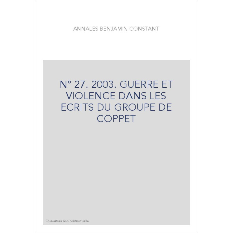 N° 27. 2003. GUERRE ET VIOLENCE DANS LES ECRITS DU GROUPE DE COPPET