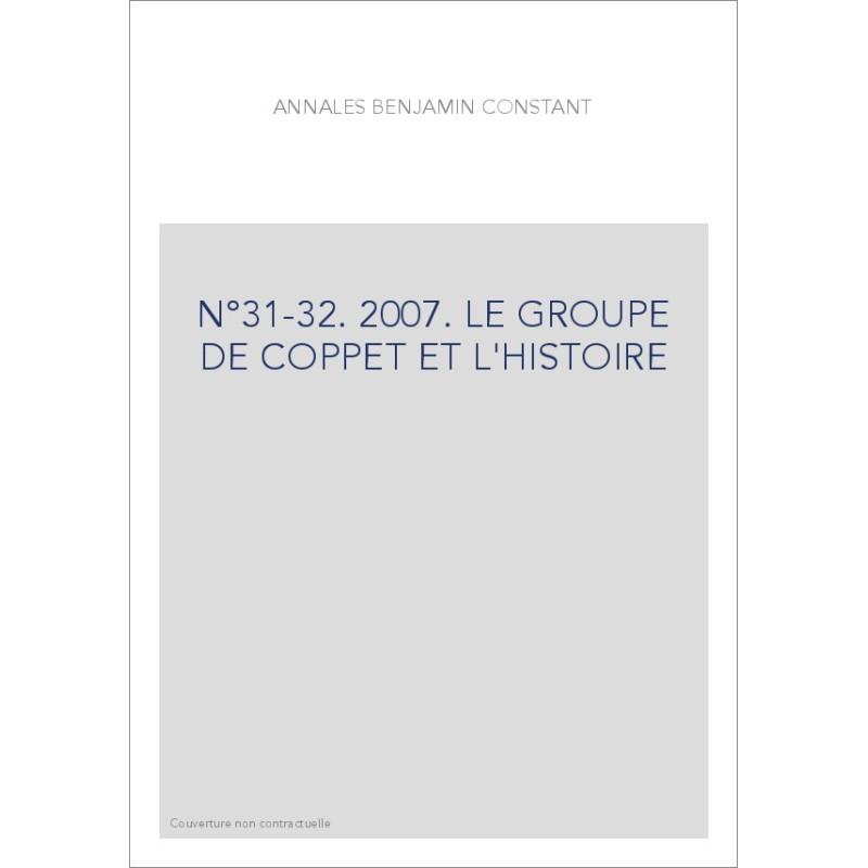 N°31-32. 2007. LE GROUPE DE COPPET ET L'HISTOIRE