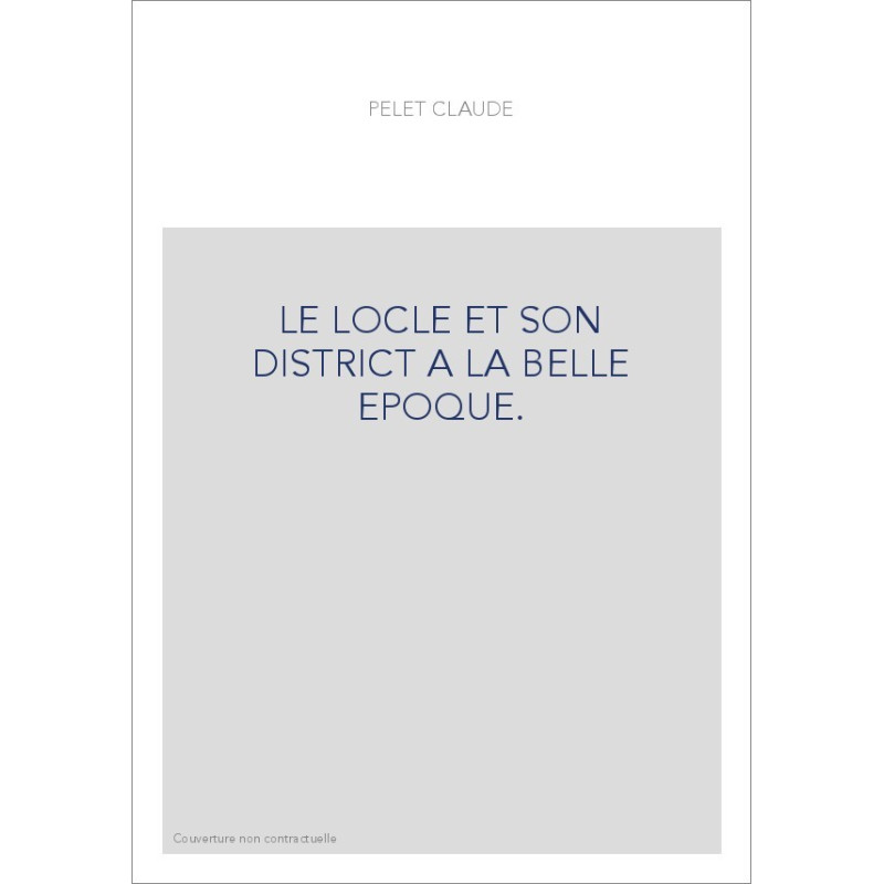 LE LOCLE ET SON DISTRICT A LA BELLE EPOQUE.