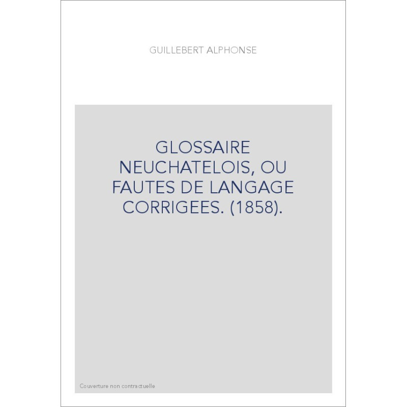GLOSSAIRE NEUCHATELOIS, OU FAUTES DE LANGAGE CORRIGEES. (1858).