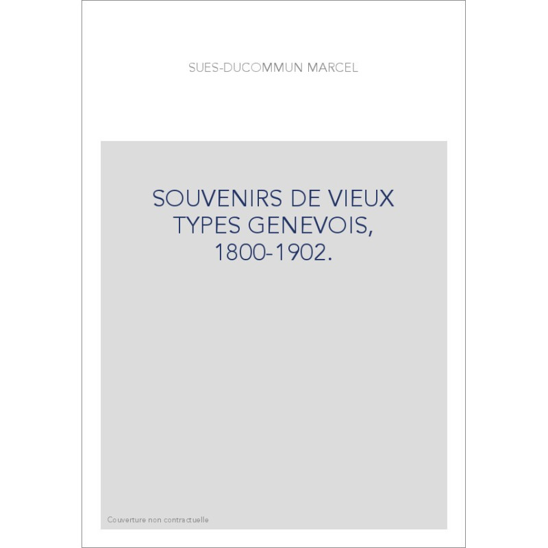 SOUVENIRS DE VIEUX TYPES GENEVOIS, 1800-1902.