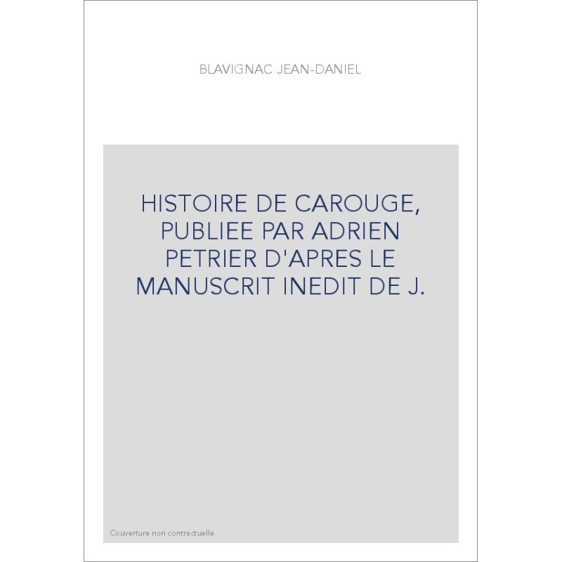 HISTOIRE DE CAROUGE, PUBLIEE PAR ADRIEN PETRIER D'APRES LE MANUSCRIT INEDIT DE J.
