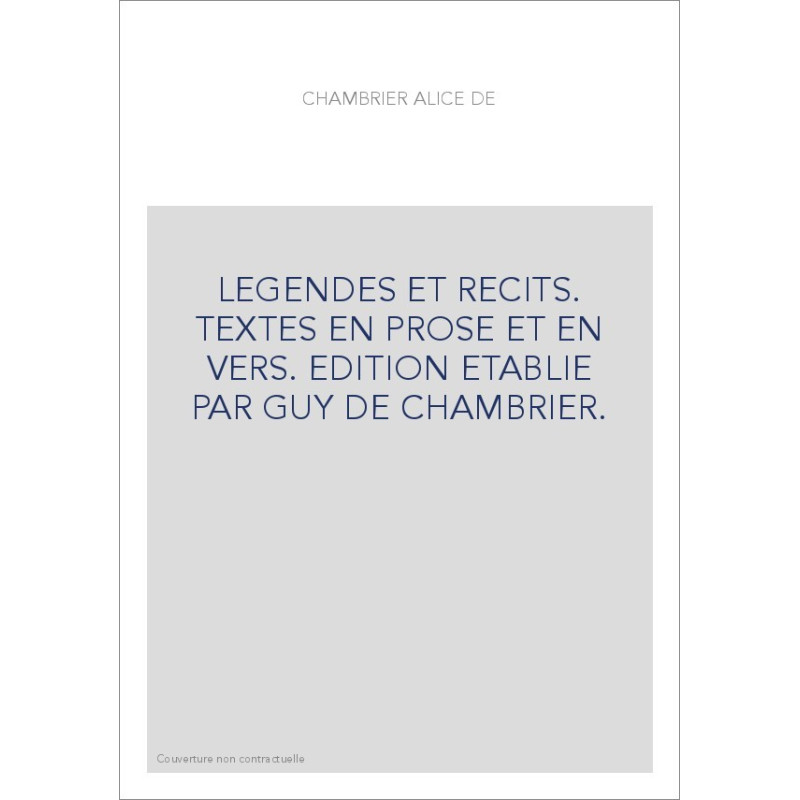 LEGENDES ET RECITS. TEXTES EN PROSE ET EN VERS. EDITION ETABLIE PAR GUY DE CHAMBRIER. Agrandir