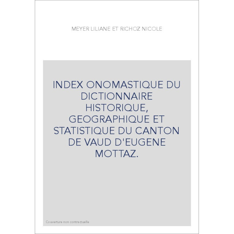 INDEX ONOMASTIQUE DU DICTIONNAIRE HISTORIQUE, GEOGRAPHIQUE ET STATISTIQUE DU CANTON DE VAUD D'EUGENE MOTTAZ.