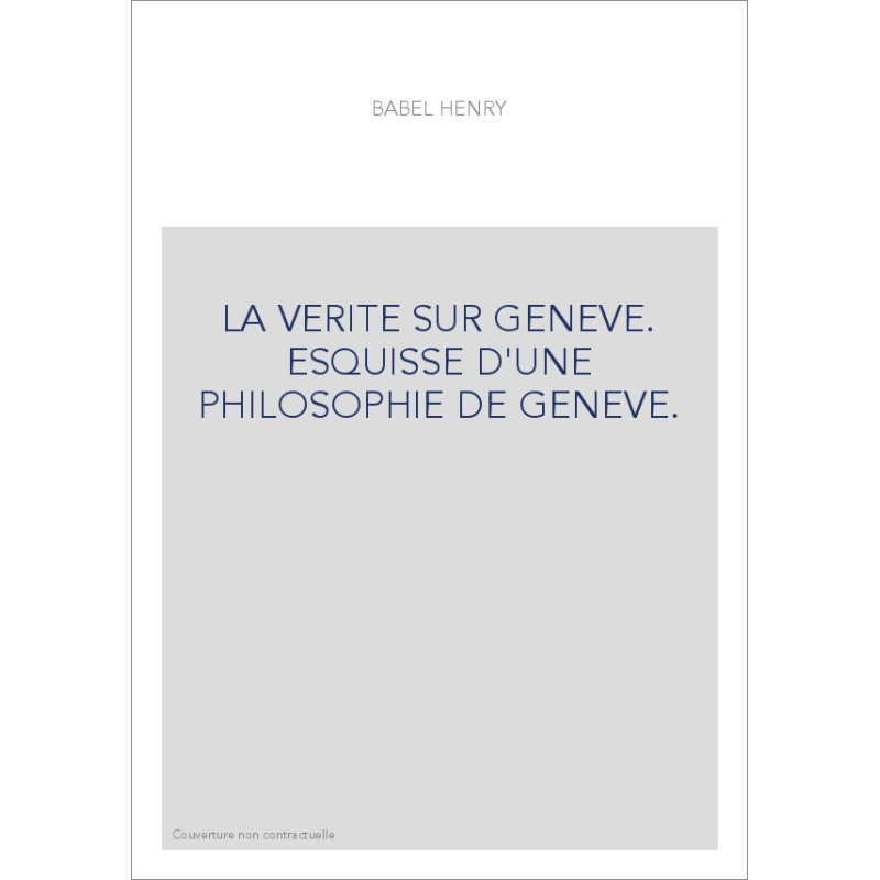 LA VERITE SUR GENEVE. ESQUISSE D'UNE PHILOSOPHIE DE GENEVE.
