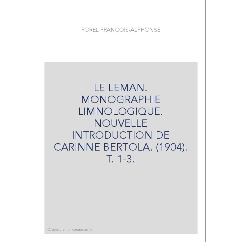 LE LEMAN. MONOGRAPHIE LIMNOLOGIQUE. NOUVELLE INTRODUCTION DE CARINNE BERTOLA. (1904). T. 1-3.