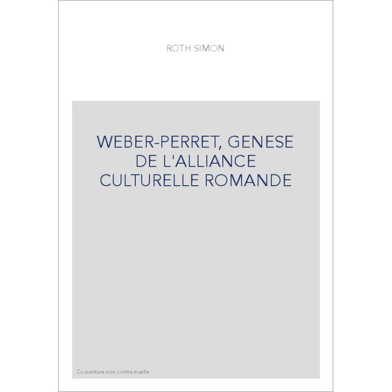 WEBER-PERRET, GENESE DE L'ALLIANCE CULTURELLE ROMANDE
