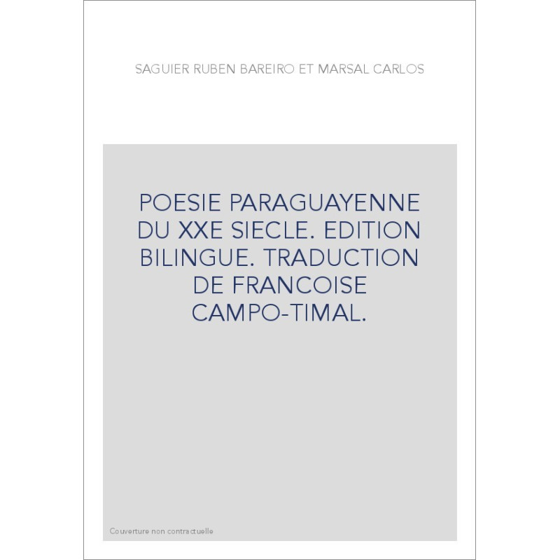 POESIE PARAGUAYENNE DU XXE SIECLE. EDITION BILINGUE. TRADUCTION DE FRANCOISE CAMPO-TIMAL.