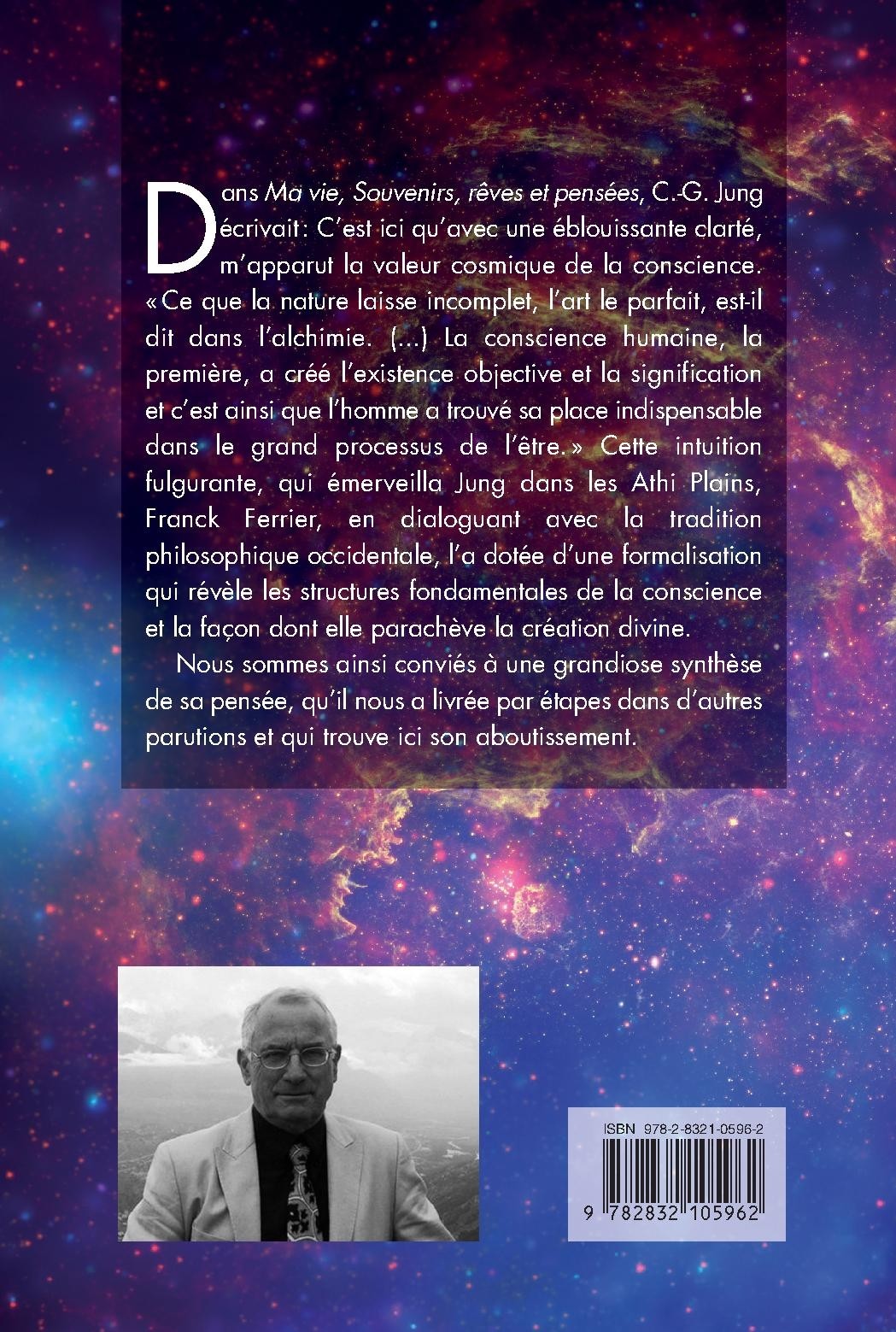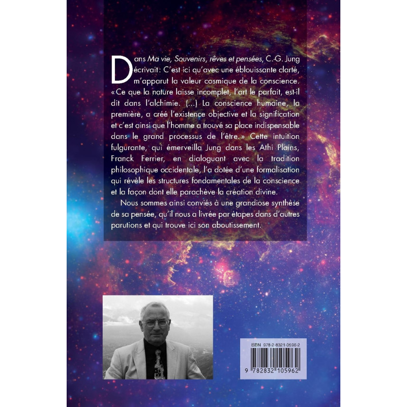 Dans Ma vie, Souvenirs, rêves et pensées, C.-G. Jung écrivait : "C’est ici qu’avec une éblouissante clarté, m’apparut la valeur cosmique de la conscience. Ce que la nature laisse incomplet, l’art le parfait, est-il dit dans l’alchimie. (...) La conscience humaine, la première, a créé l’existence objective et la signification et c’est ainsi que l’homme a trouvé sa place indispensable dans le grand processus de l’être.» Cette intuition fulgurante, qui émerveilla Jung dans les Athi Plains, Franck Ferrier, en dialoguant avec la tradition philosophique occidentale, l’a dotée d’une formalisation qui révèle les structures fondamentales de la conscience et la façon dont elle parachève la création divine. Nous sommes ainsi conviés à une grandiose synthèse de sa pensée, qu’il nous a livrée par étapes dans d’autres parutions et qui trouve ici son aboutissement.