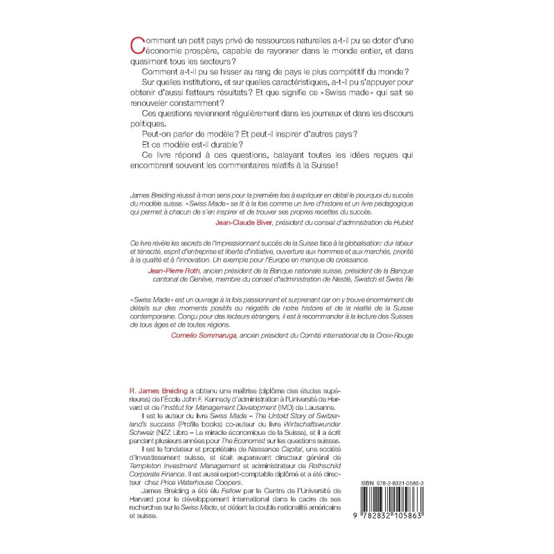 James Breiding réussit à mon sens pour la première fois à expliquer en détail le pourquoi du succès du modèle suisse. «Swiss Made» se lit à la fois comme un livre d’histoire et un livre pédagogique qui permet à chacun de s’en inspirer et de trouver ses propres recettes du succès.