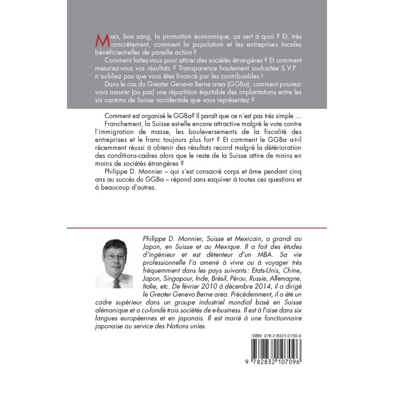 Comment est organisé le GGBa? Il paraît que ce n’est pas très simple …Franchement, la Suisse est-elle encore attractive malgré le vote contre l’immigration de masse, les bouleversements de la fiscalité des entreprises et le franc toujours plus fort ? Et comment le GGBa a-t-il récemment réussi à obtenir des résultats record malgré la détérioration des conditions-cadres alors que le reste de la Suisse attire de moins en moins de sociétés étrangères ? Philippe D. Monnier – qui s’est consacré corps et âme pendant cinq ans au succès du GGBa – répond sans esquiver à toutes ces questions et à beaucoup d’autres.