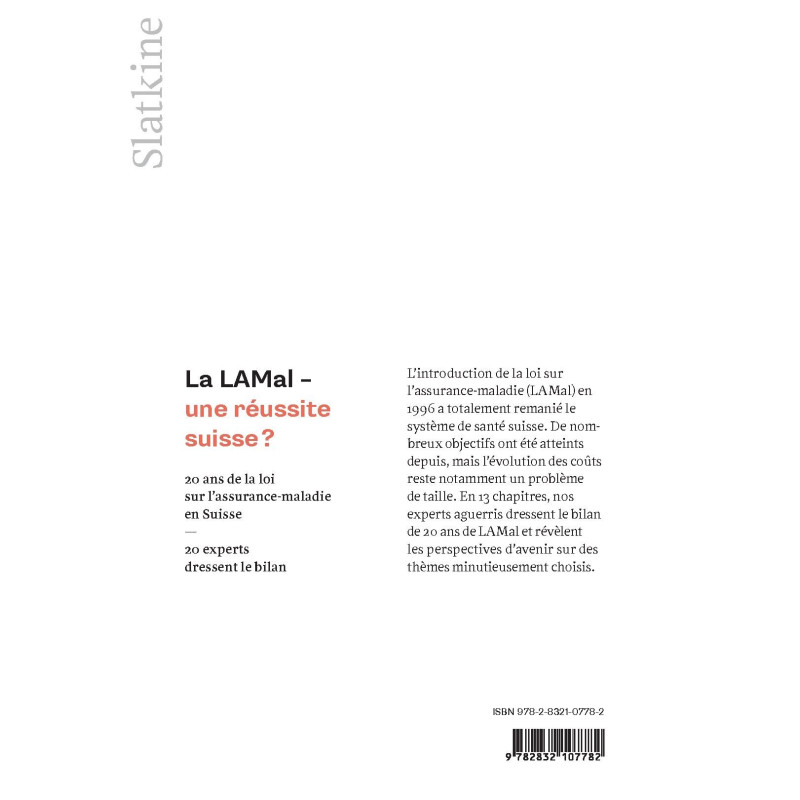 L’introduction de la loi sur l’assurance-maladie (LAMal) en 1996 a totalement remanié le système de santé suisse. De nombreux objectifs ont été atteints depuis, mais l’évolution des coûts reste notamment un problème de taille. En 13 chapitres, nos experts aguerris dressent le bilan de 20 ans de LAMal et révèlent les perspectives d’avenir sur des thèmes minutieusement choisis.