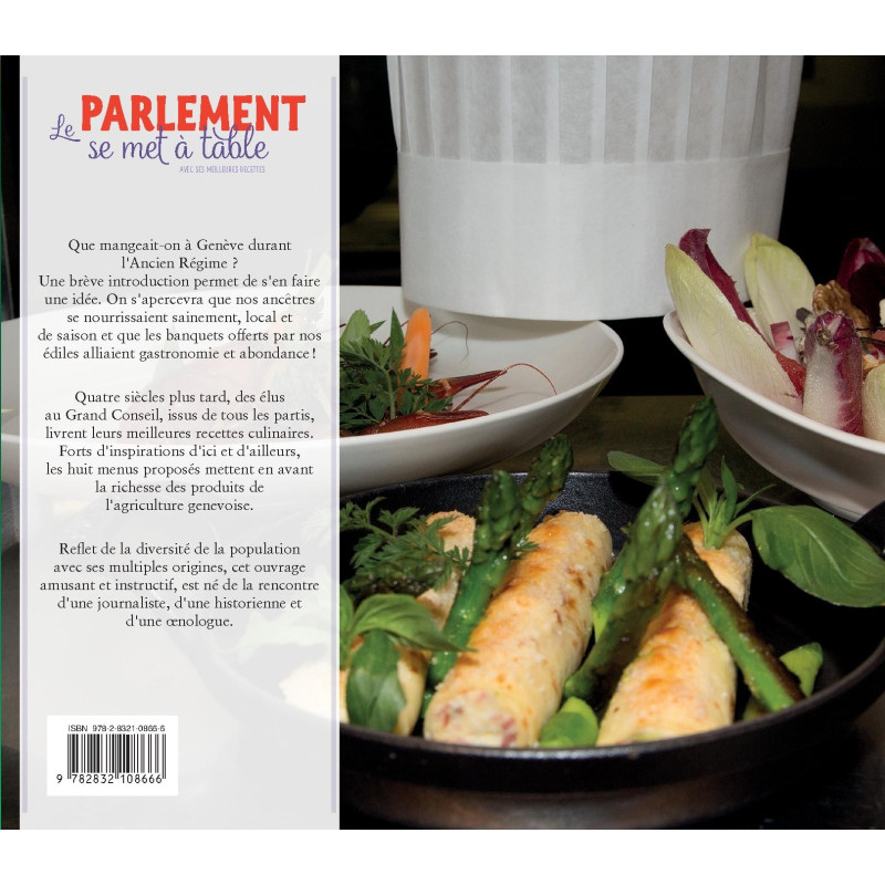 Quatre siècles plus tard, des élus au Grand Conseil, issus de tous les partis, livrent leurs meilleures recettes culinaires. Forts d'inspirations d'ici et d'ailleurs, les huit menus proposés mettent en avant la richesse des produits de l'agriculture genevoise.