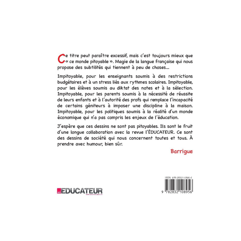 J’espère que ces dessins ne sont pas pitoyables. Ils sont le fruit d’une longue collaboration avec la revue l’ÉDUCATEUR. Ce sont des dessins de société qui nous concernent toutes et tous. À prendre avec humour, bien sûr.