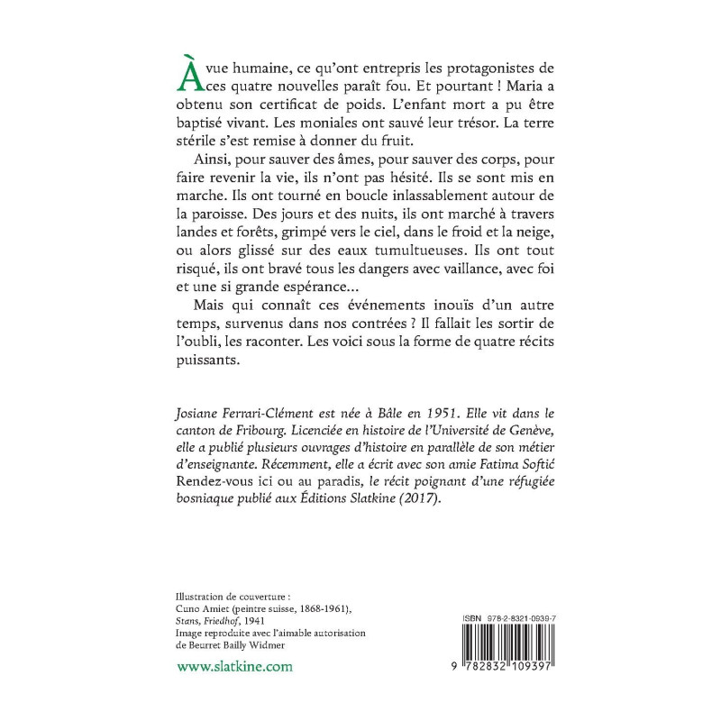 Mais qui connaît ces événements inouïs d’un autre temps, survenus dans nos contrées ? Il fallait les sortir de l’oubli, les raconter. Les voici sous la forme de quatre récits puissants.