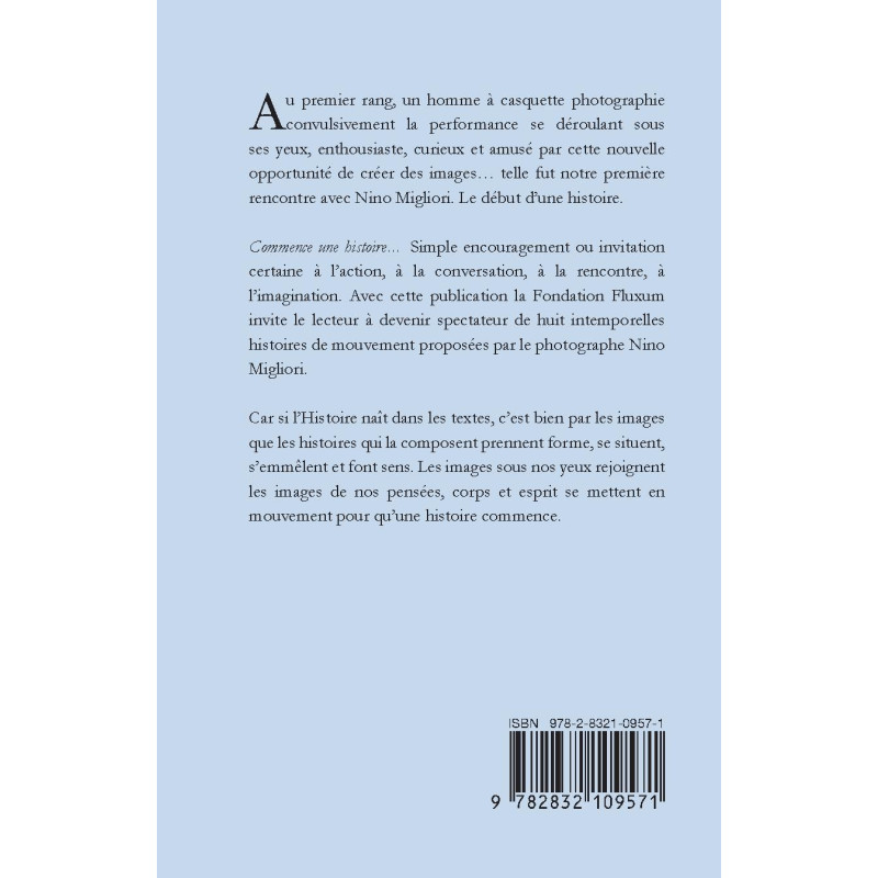 Commence une histoire… Simple encouragement ou invitation certaine à l’action, à la conversation, à la rencontre, à l’imagination. Avec cette publication la Fondation Fluxum invite le lecteur à devenir spectateur de huit intemporelles histoires de mouvement proposées par le photographe Nino Migliori.