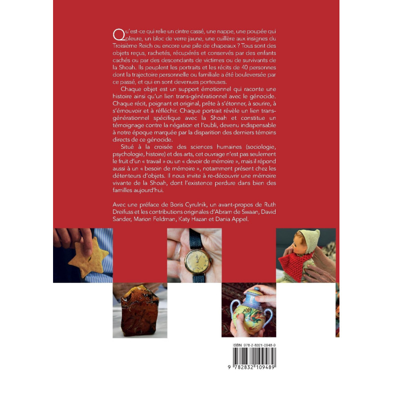 Situé à la croisée des sciences humaines (sociologie, psychologie, histoire) et des arts, cet ouvrage n’est pas seulement le fruit d’un « travail » ou un « devoir de mémoire », mais il répond aussi à un « besoin de mémoire », notamment présent chez les détenteurs d’objets. Il nous invite à re-découvrir une mémoire vivante de la Shoah, dont l’existence perdure dans bien des familles aujourd’hui.