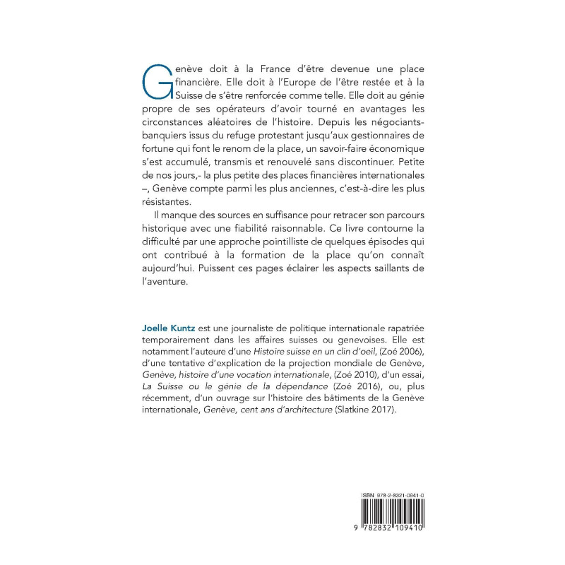 Genève doit à la France d’être devenue une place financière. Elle doit à l’Europe de l’être restée et à la Suisse de s’être renforcée comme telle. Elle doit au génie propre de ses opérateurs d’avoir tourné en avantages les circonstances aléatoires de l’histoire. Depuis les négociants-banquiers issus du refuge protestant jusqu’aux gestionnaires de fortune qui font le renom de la place, un savoir-faire économique s’est accumulé, transmis et renouvelé sans discontinuer. Petite de nos jours,- la plus petite des places financières internationales –, Genève compte parmi les plus anciennes, c’est-à-dire les plus résistantes.