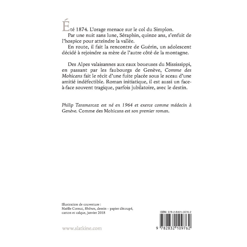 Des Alpes valaisannes aux eaux boueuses du Mississippi, en passant par les faubourgs de Genève, Comme des Mohicans fait le récit d’une fuite placée sous le sceau d’une amitié indéfectible. Roman initiatique, il est aussi un face-à-face souvent tragique, parfois jubilatoire, avec le destin.