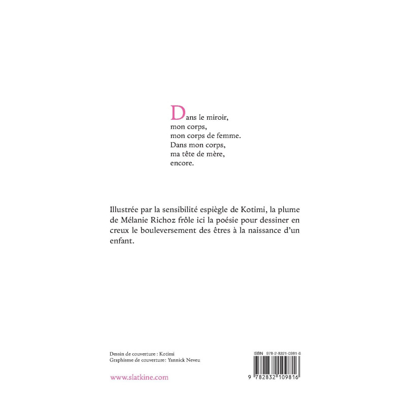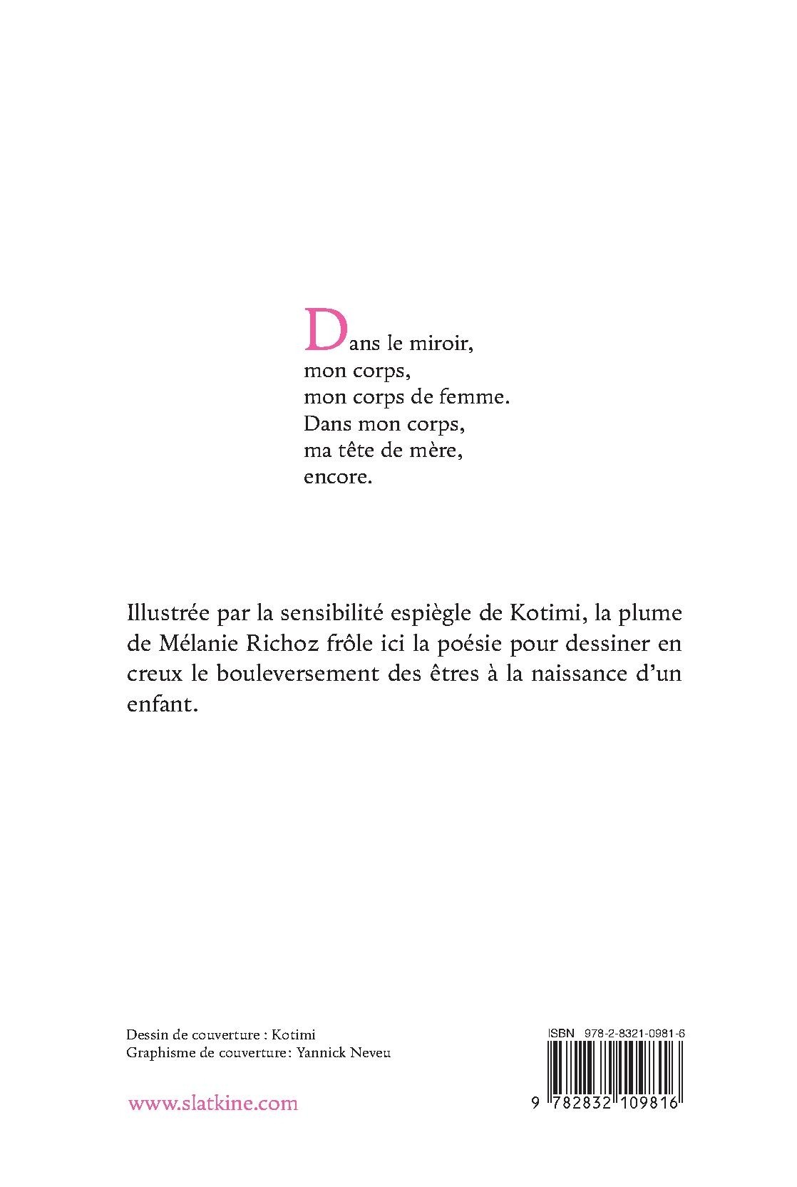 Illustrée par la sensibilité espiègle de Kotimi, la plume de Mélanie Richoz frôle ici la poésie pour dessiner en creux le bouleversement des êtres à la naissance d’un enfant.