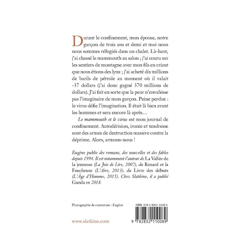Le mammouth et le virus est mon journal de confinement. Autodérision, ironie et tendresse sont des armes de destruction massive contre la déprime. Alors, armons-nous !