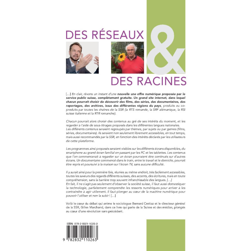 Voilà le coeur du débat qui anime le sociologue Bernard Crettaz et le directeur général de la SSR, Gilles Marchand, dans ce livre qui parle de la Suisse et des médias, plongés au coeur d’une révolution sans précédent.