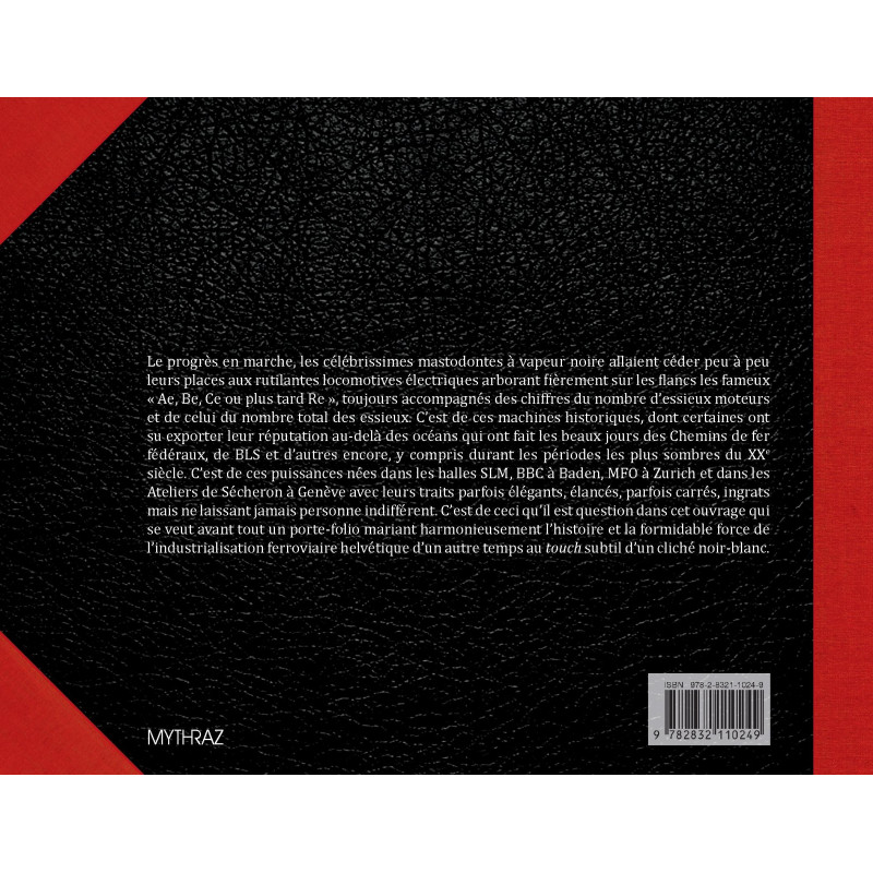 Le progrès en marche, les célébrissimes mastodontes à vapeur noire allaient céder peu à peu leurs places aux rutilantes locomotives électriques arborant fièrement sur les flancs les fameux « Ae, Be, Ce ou plus tard Re », toujours accompagnés des chiffres du nombre d’essieux moteurs et de celui du nombre total des essieux. C’est de ces machines historiques, dont certaines ont su exporter leur réputation au-delà des océans qui ont fait les beaux jours des Chemins de fer fédéraux, de BLS et d’autres encore, y compris durant les périodes les plus sombres du XXe siècle. C’est de ces puissances nées dans les halles SLM, BBC à Baden, MFO à Zurich et dans les Ateliers de Sécheron à Genève avec leurs traits parfois élégants, élancés, parfois carrés, ingrats mais ne laissant jamais personne indifférent. C’est de ceci qu’il est question dans cet ouvrage qui se veut avant tout un porte-folio mariant harmonieusement l’histoire et la formidable force de l’industrialisation ferroviaire helvétique d’un autre temps au touch subtil d’un cliché noir-blanc.