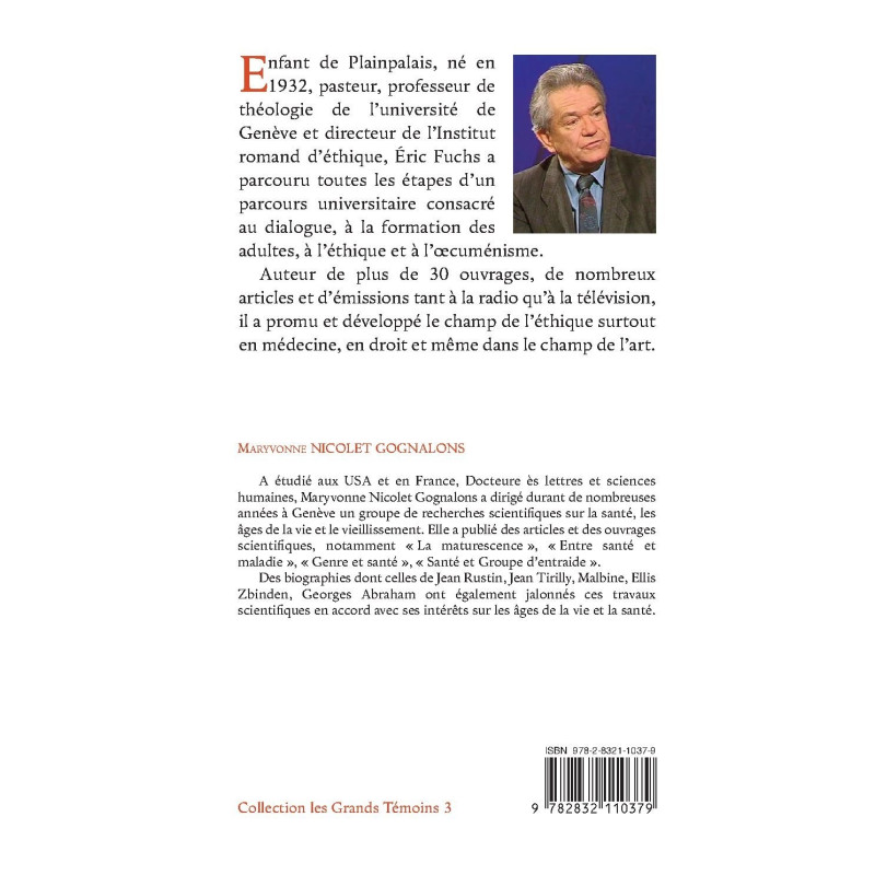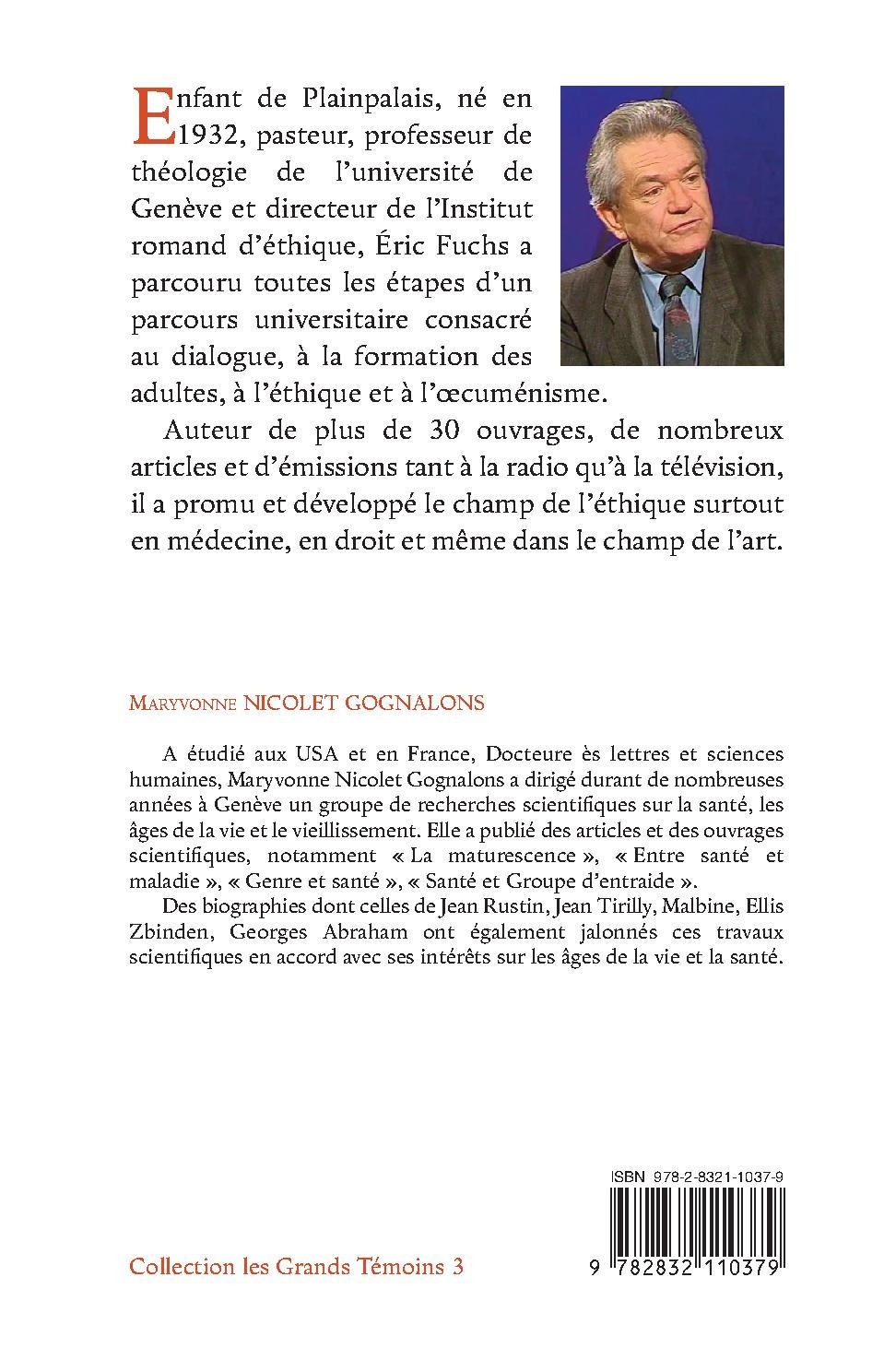 Enfant de Plainpalais, né en 1932, pasteur, professeur de théologie de l’université de Genève et directeur de l’Institut romand d’éthique, Éric Fuchs a parcouru toutes les étapes d’un parcours universitaire consacré au dialogue, à la formation des adultes, à l’éthique et à l’oecuménisme.