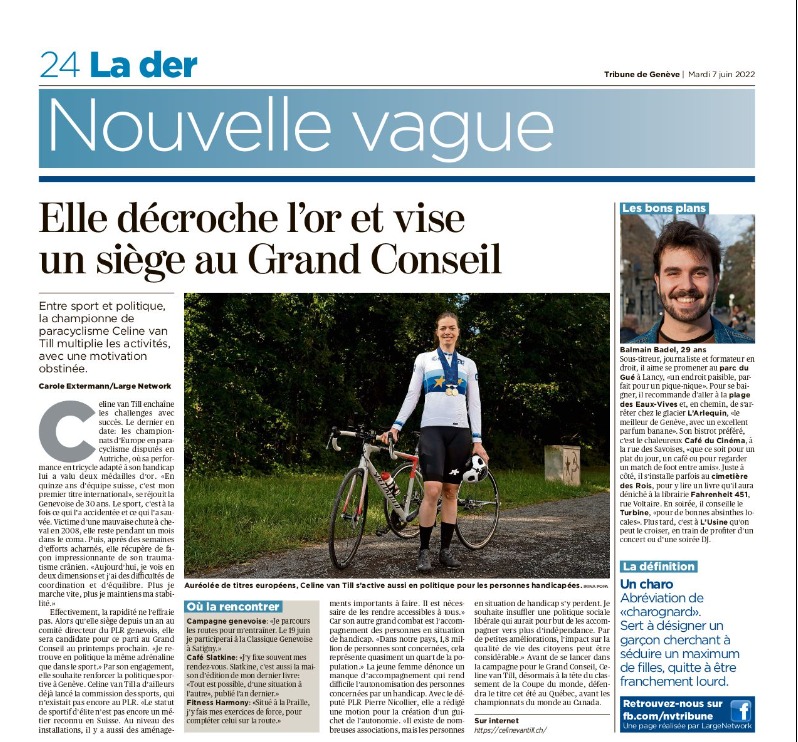 Sa mission ? Aider. Elle est engagée pour défendre les intérêts des personnes en situation de handicap et veut oeuvrer pour notre société. Elle donne des conférences en entreprise et mène sa carrière sportive de front. Celine inspire par sa détermination à toute épreuve et veut la transmettre au plus de personnes possible.