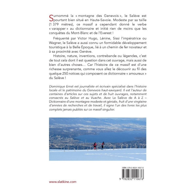 Histoire, nature, inventions, contrebande ou légendes, c’est de tout cela dont il est question dans cet ouvrage, mais aussi de bien d’autres choses… Car l’histoire de ce massif est d’une richesse surprenante, comme vous allez le découvrir au fil des quelque 250 notices qui composent ce dictionnaire « amoureux » du Salève !