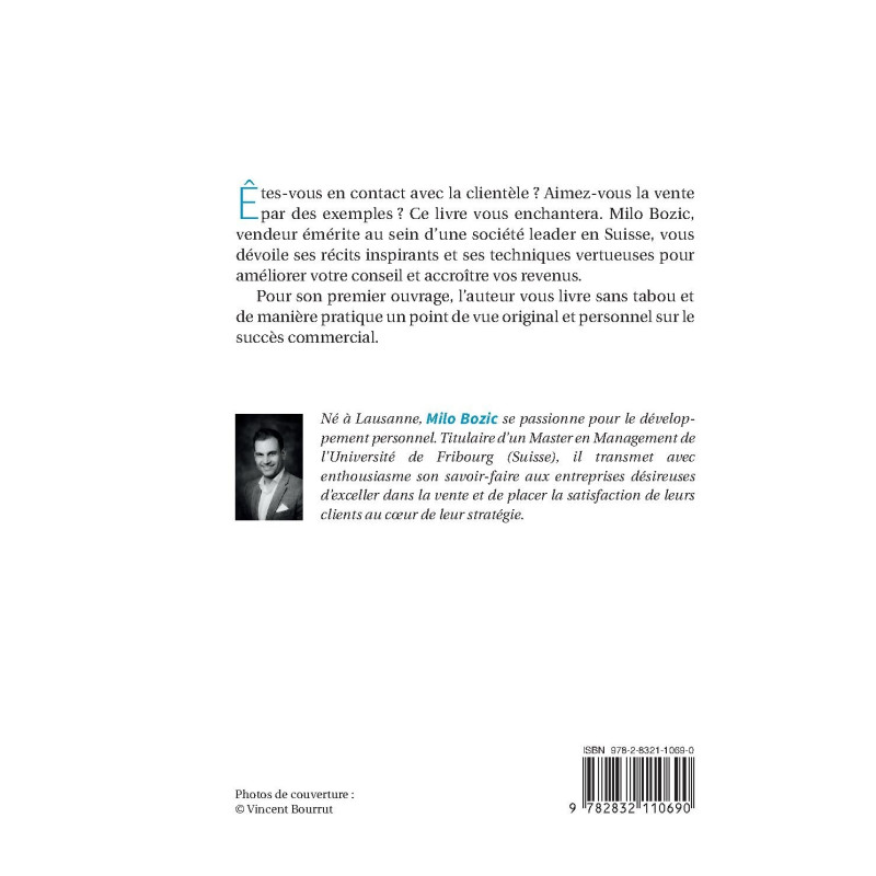 Êtes-vous en contact avec la clientèle ? Aimez-vous la vente par des exemples ? Ce livre vous enchantera. Milo Bozic, vendeur émérite au sein d’une société leader en Suisse, vous dévoile ses récits inspirants et ses techniques vertueuses pour améliorer votre conseil et accroître vos revenus.