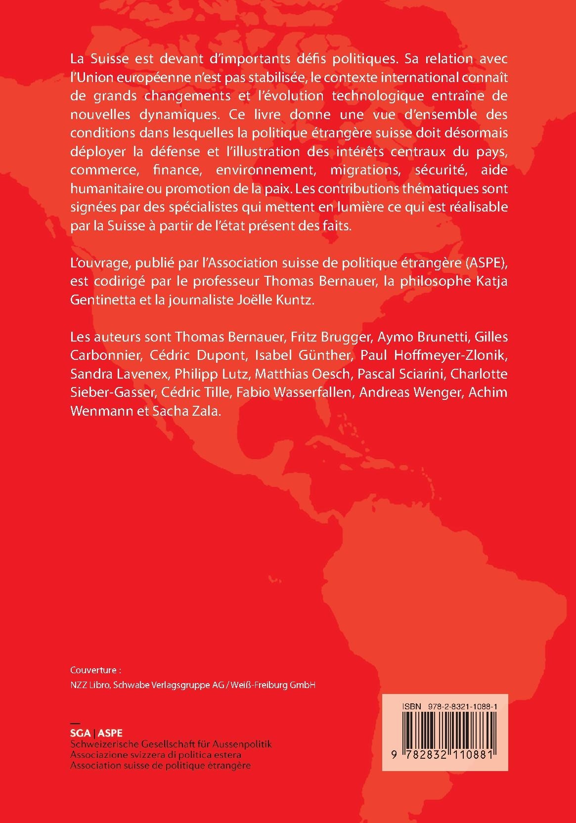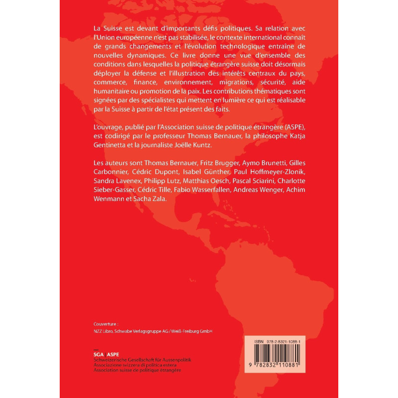 L’ouvrage, publié par l’Association suisse de politique étrangère (ASPE), est codirigé par le professeur Thomas Bernauer, la philosophe Katja Gentinetta et la journaliste Joëlle Kuntz. Les auteurs sont Thomas Bernauer, Fritz Brugger, Aymo Brunetti, Gilles Carbonnier, Cédric Dupont, Isabel Günther, Paul Hoffmeyer-Zlonik, Sandra Lavenex, Philipp Lutz, Matthias Oesch, Pascal Sciarini, Charlotte Sieber-Gasser, Cédric Tille, Fabio Wasserfallen, Andreas Wenger, Achim Wenmann et Sacha Zala.
