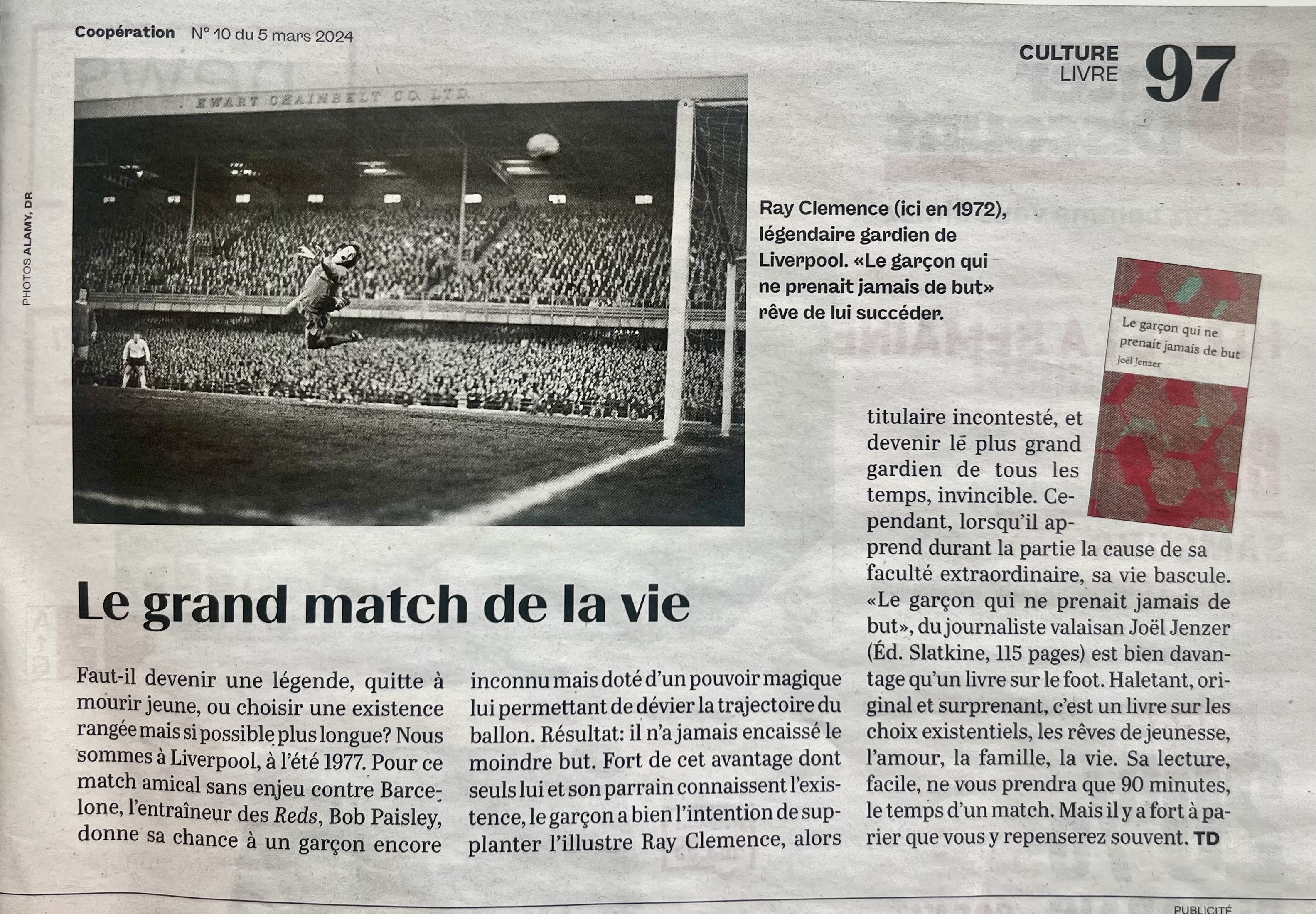 Le journaliste Joël Jenzer, déjà auteur de romans, s’illustre ici avec succès dans un nouveau registre. Dans la tête d’un gardien invincible, il nous tient en haleine au fil des minutes de cette rencontre mythique.