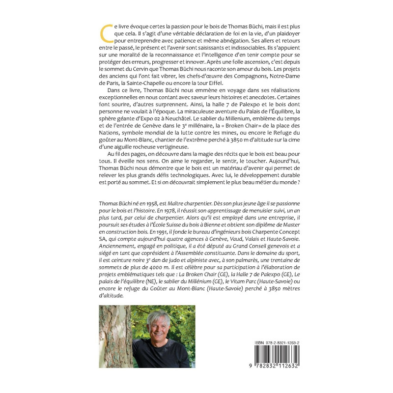 Ce livre évoque certes la passion pour le bois de Thomas Büchi, mais il est plus que cela. Il s’agit d’une véritable déclaration de foi en la vie, d’un plaidoyer pour entreprendre avec patience et même abnégation. Ses allers et retours entre le passé, le présent et l’avenir sont saisissants et indissociables. Ils s’appuient sur une moralité de la reconnaissance et l’intelligence d’en tenir compte pour se protéger des erreurs, progresser et innover. Après une folle ascension, c’est depuis le sommet du Cervin que Thomas Büchi nous raconte son amour du bois. Les projets des anciens qui l’ont fait vibrer, les chefs-d’oeuvre des Compagnons, Notre-Dame de Paris, la Sainte-Chapelle ou encore la tour Eiffel.