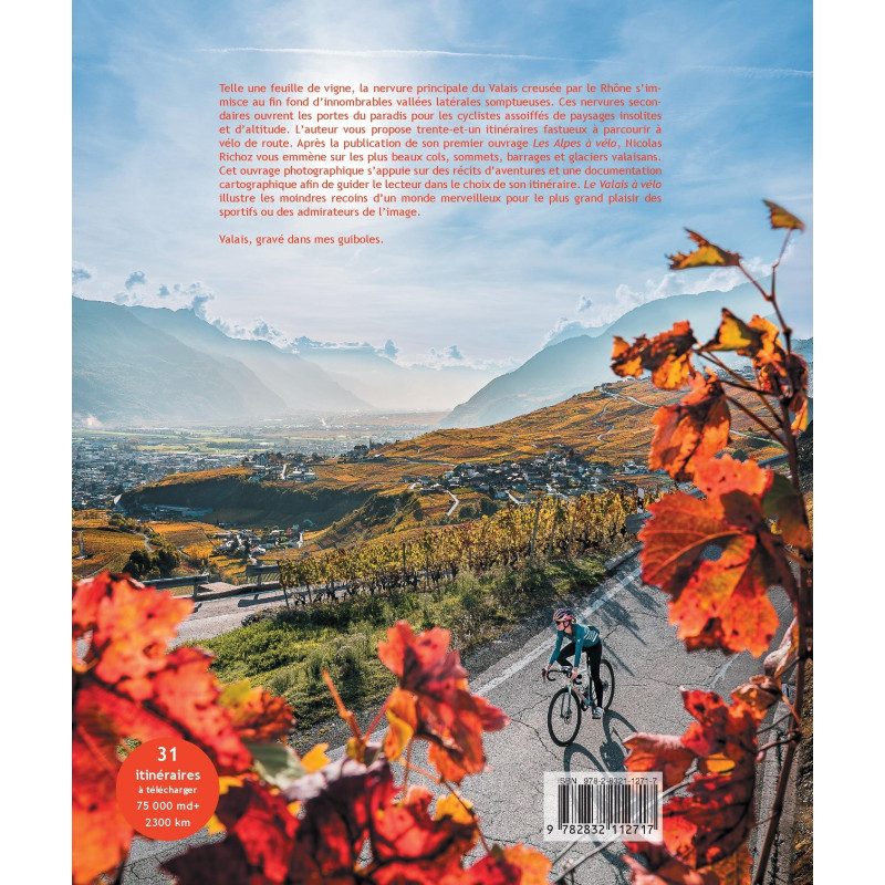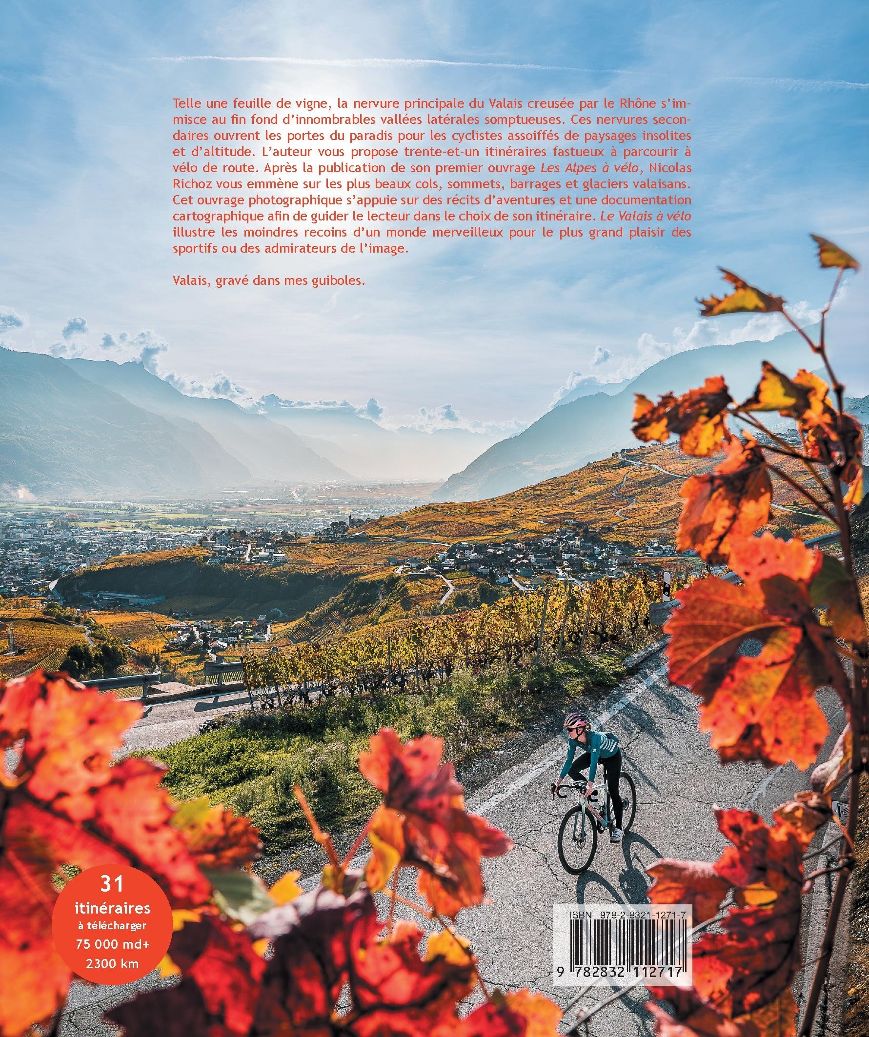 Telle une feuille de vigne, la nervure principale du Valais creusée par le Rhône s’immisce au fi n fond d’innombrables vallées latérales somptueuses. Ces nervures secondaires ouvrent les portes du paradis pour les cyclistes assoiffés de paysages insolites et d’altitude. L’auteur vous propose trente-et-un itinéraires fastueux à parcourir à vélo de route. Après la publication de son premier ouvrage Les Alpes à vélo, Nicolas Richoz vous emmène sur les plus beaux cols, sommets, barrages et glaciers valaisans.