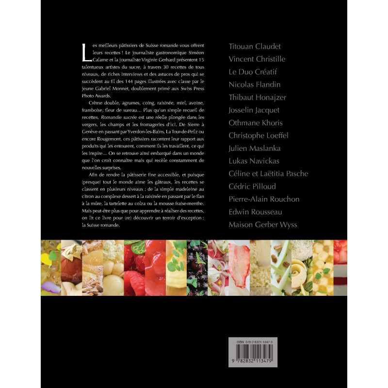 Les meilleurs pâtissiers de Suisse romande vous offrent leurs recettes ! Le journaliste gastronomique Siméon Calame et la journaliste Virginie Gerhard présentent 15 talentueux artistes du sucre, à travers 30 recettes de tous niveaux, de riches interviews et des astuces de pros qui se succèdent au fil des 144 pages illustrées avec classe par le jeune Gabriel Monnet, doublement primé aux Swiss Press Photo Awards.