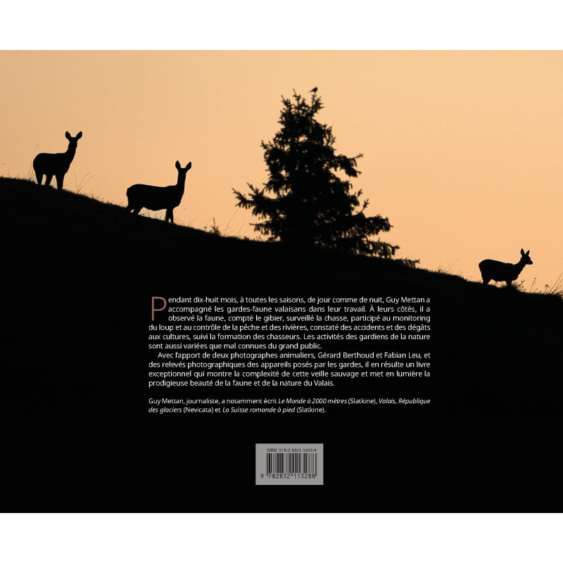 Pendant dix-huit mois, à toutes les saisons, de jour comme de nuit, Guy Mettan a accompagné les gardes-faune valaisans dans leur travail. À leurs côtés, il a observé la faune, compté le gibier, surveillé la chasse, participé au monitoring du loup et au contrôle de la pêche et des rivières, constaté des accidents et des dégâts aux cultures, suivi la formation des chasseurs. Les activités des gardiens de la nature sont aussi variées que mal connues du grand public.