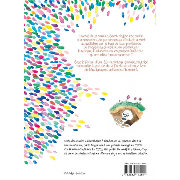 Durant deux années, Sarah Najjar est partie à la rencontre de personnes qui côtoient la mort au quotidien par le biais de leur profession. De l’hôpital au cimetière, en passant par la morgue, l’université ou les pompes funèbres... qu’ont-elles à nous raconter ?