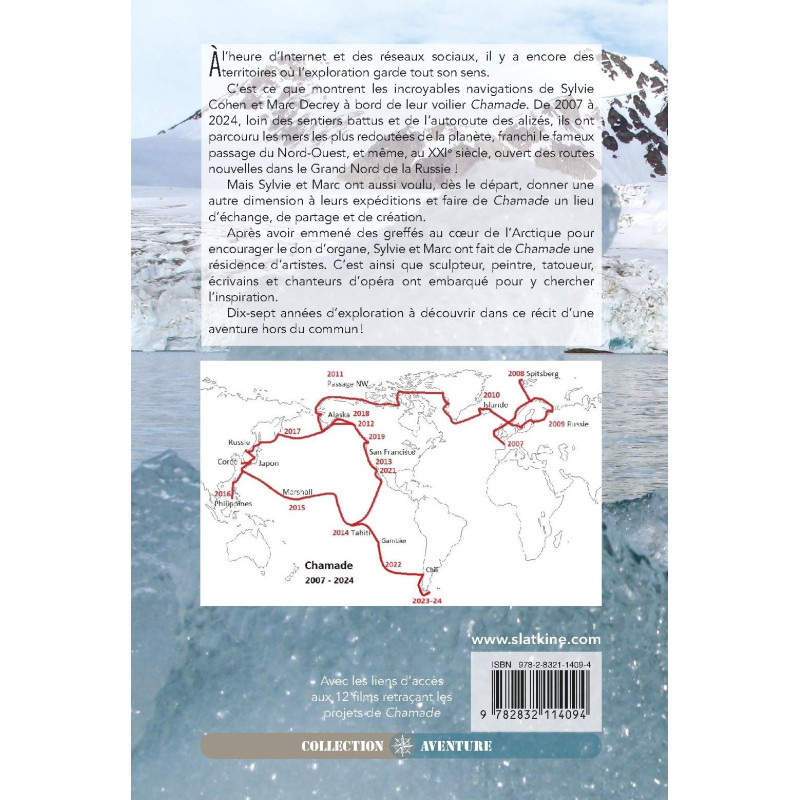 Après avoir emmené des greffés au cœur de l’Arctique pour encourager le don d’organes, Sylvie et Marc ont fait de Chamade une résidence d’artistes. C’est ainsi que sculpteur, peintre, tatoueur, écrivains et chanteurs d’opéra ont embarqué pour y chercher l’inspiration. Dix-sept années d’exploration à découvrir dans ce récit d’une aventure hors du commun !