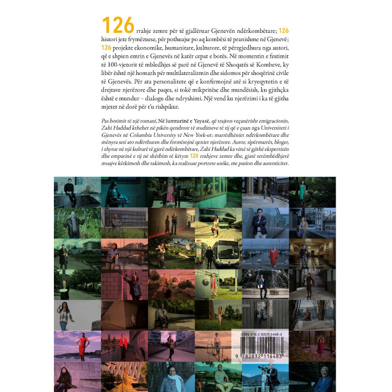 126 rrahje zemre për të gjallëruar Gjenevën ndërkombëtare; 126 histori jete frymëzuese, për pothuajse po aq kombësi të pranishme në Gjenevë; 126 projekte ekonomike, humanitare, kulturore, të përzgjedhura nga autori, që e shpien emrin e Gjenevës në katër cepat e botës. Në momentin e festimit të 100-vjetorit të mbledhjes së parë në Gjenevë të Shoqatës së Kombeve, ky libër është një homazh për multilateralizmin dhe sidomos për shoqërinë civile të Gjenevës. Për ata personalitete që e konfirmojnë atë si kryeqytetin e të drejtave njerëzore dhe paqes, si tokë mikpritëse dhe mundësish, ku gjithçka është e mundur – dialogu dhe ndryshimi. Një vend ku njerëzimi i ka të gjitha mjetet në dorë për t’u rishpikur.