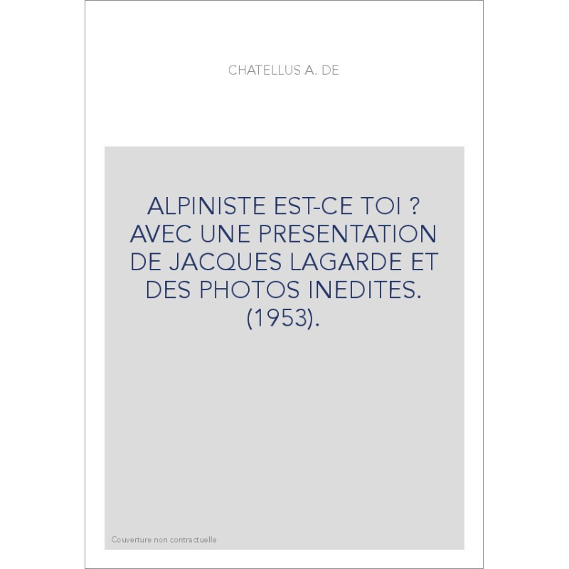 ALPINISTE EST-CE TOI ? AVEC UNE PRESENTATION DE JACQUES LAGARDE ET DES PHOTOS INEDITES. (1953).
