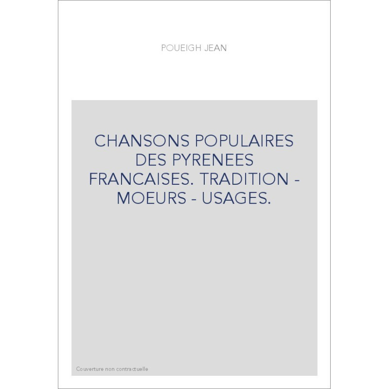 CHANSONS POPULAIRES DES PYRENEES FRANCAISES. TRADITION - MOEURS - USAGES.